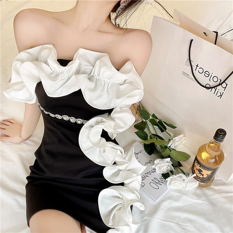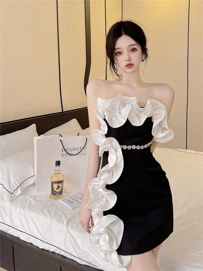 ヘップバーンスタイルのイブニングドレススカートフェミニンな気質ライトラグジュアリーニッチハイエンドフレンチセクシーショート見事なチューブトップドレス micat28280457575