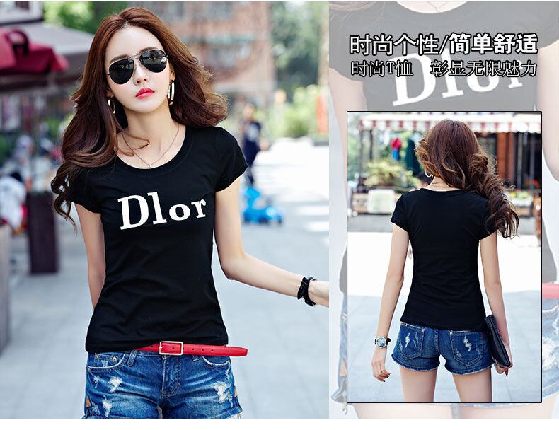 ホワイトコットンラウンドネックTシャツレディース半袖サマードレス新しいスリムプリントTシャツインナーボトミングシャツハーフスリーブトップ qmn22998004272