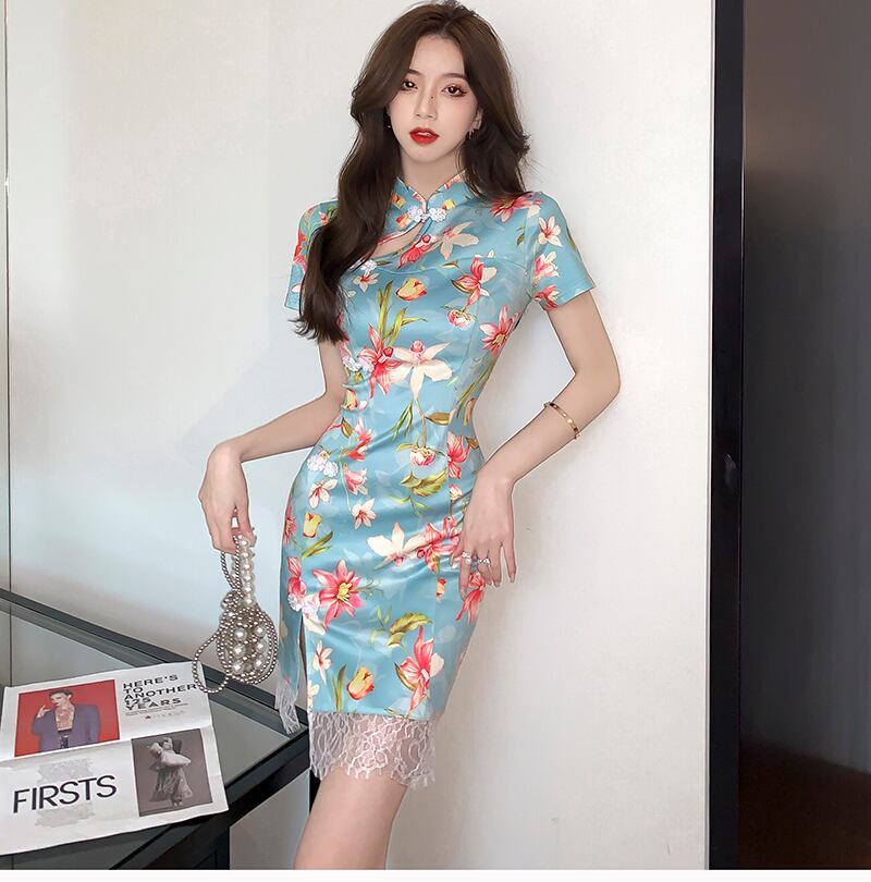 改良されたチャイナドレス2022年の新しい夏の若い気質のセクシーなレースのステッチスリットドレス micat41935031887