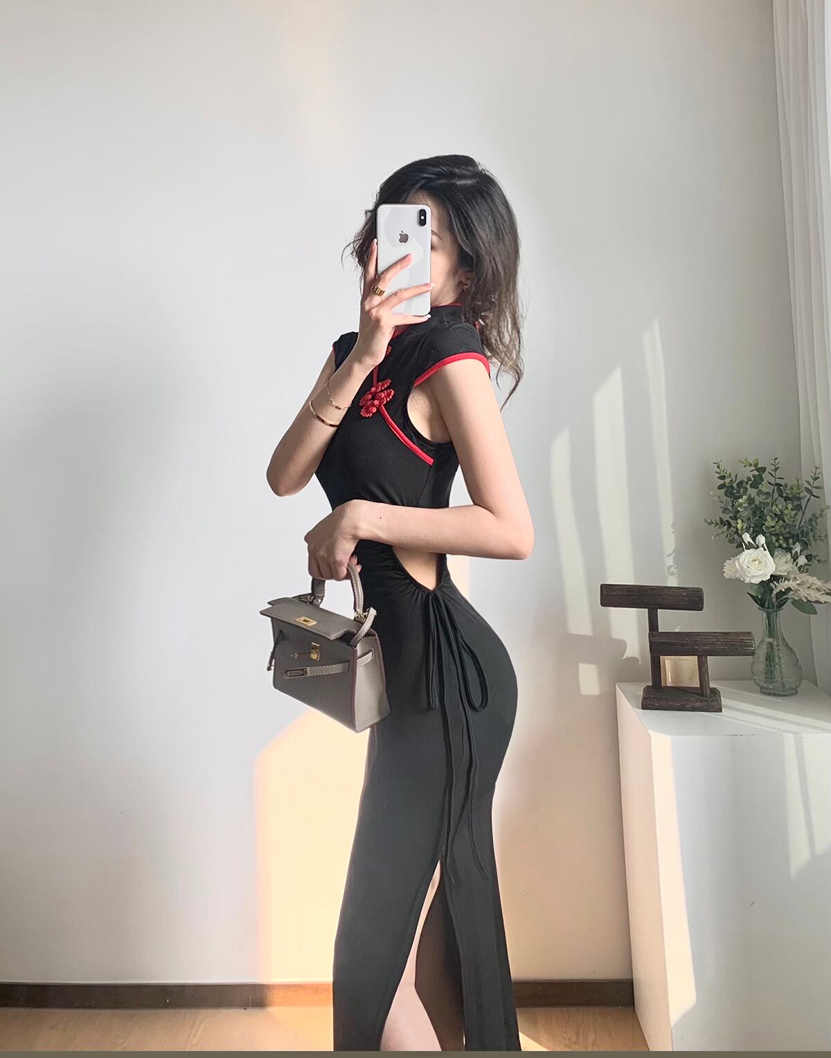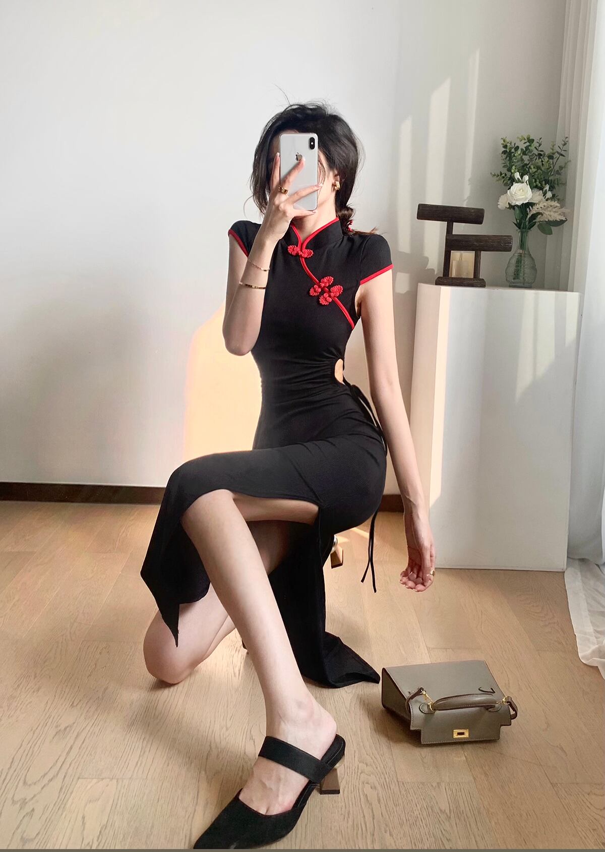 改良されたチャイナドレス2022新しいニッチなデザインの若いセクシーな中空ウエストミドル丈ドレス micat63589929786