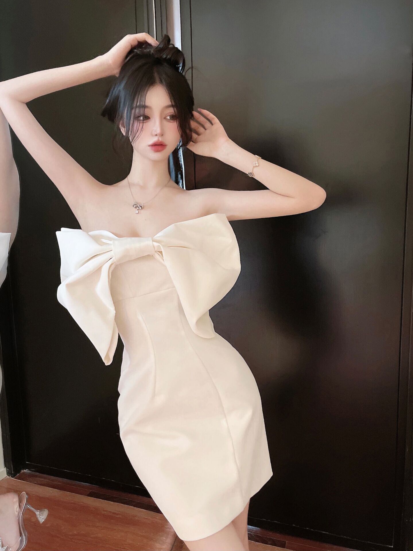 フランスの小さなドレススカートショートナイトショップ女性の宴会気質甘い大きな弓セクシーなチューブトップドレス micat69180352793