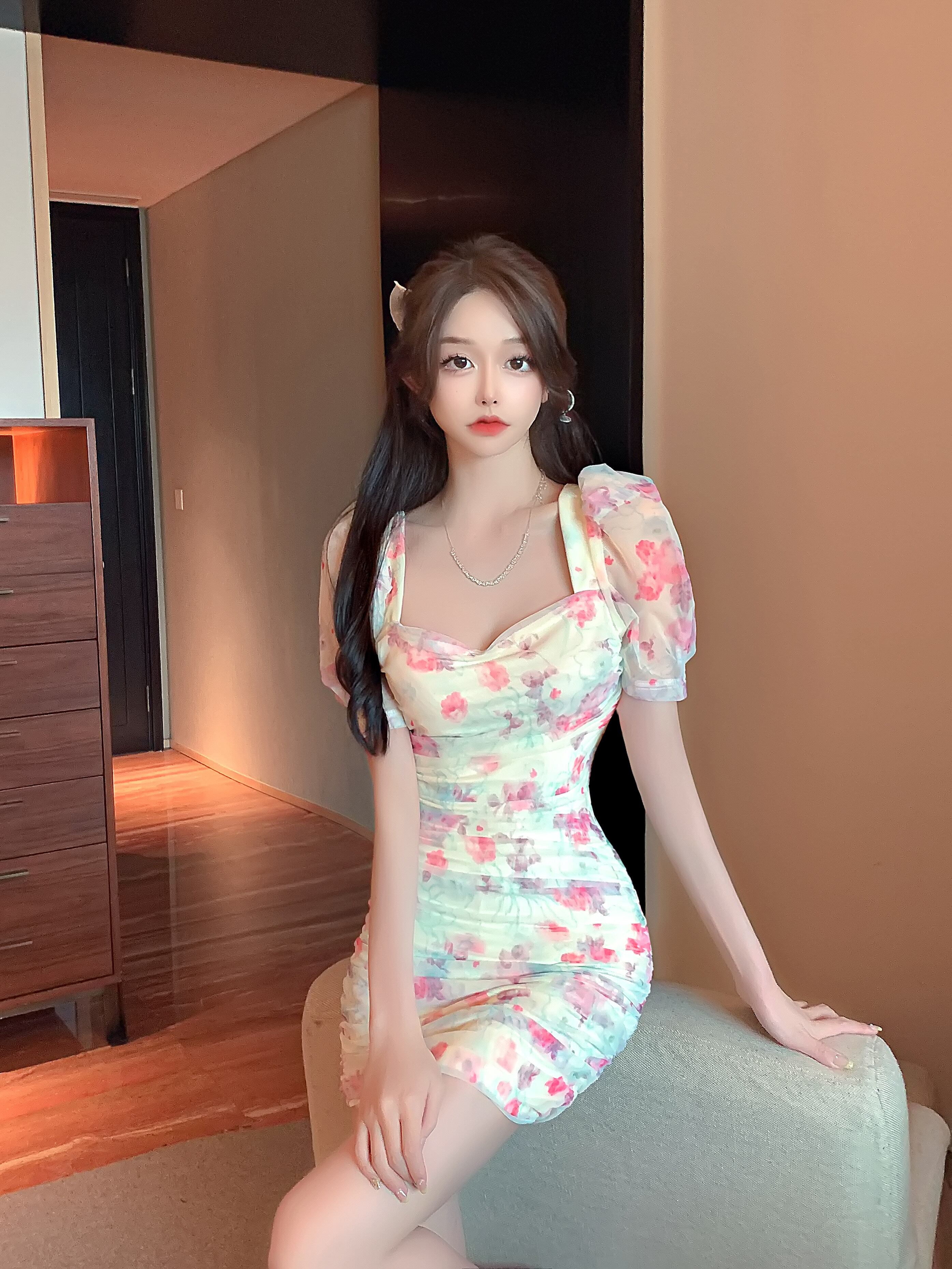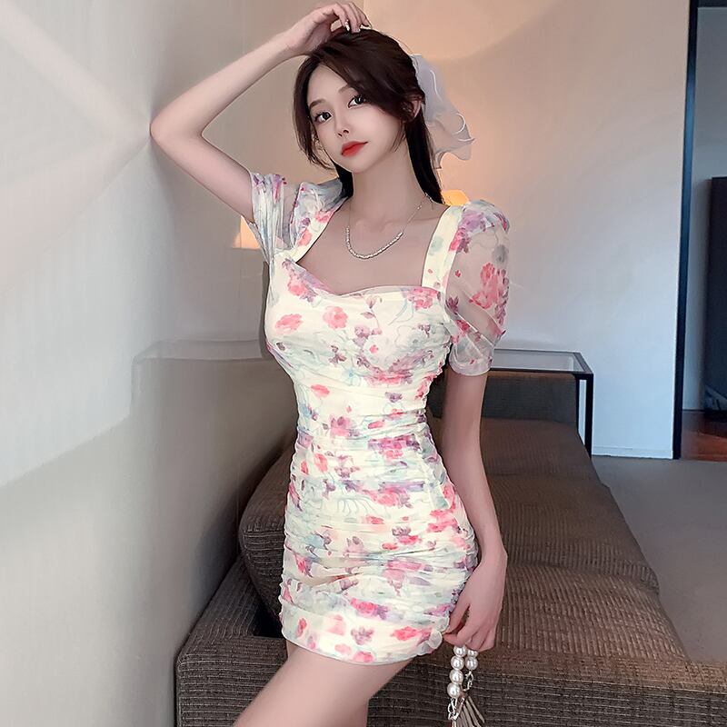 ナイトクラブ女性のナイトクラブ純粋な欲望スタイルセクシーなローカットスクエアネックパフスリーブバッグヒップカラーシフォンドレス micat79227797545