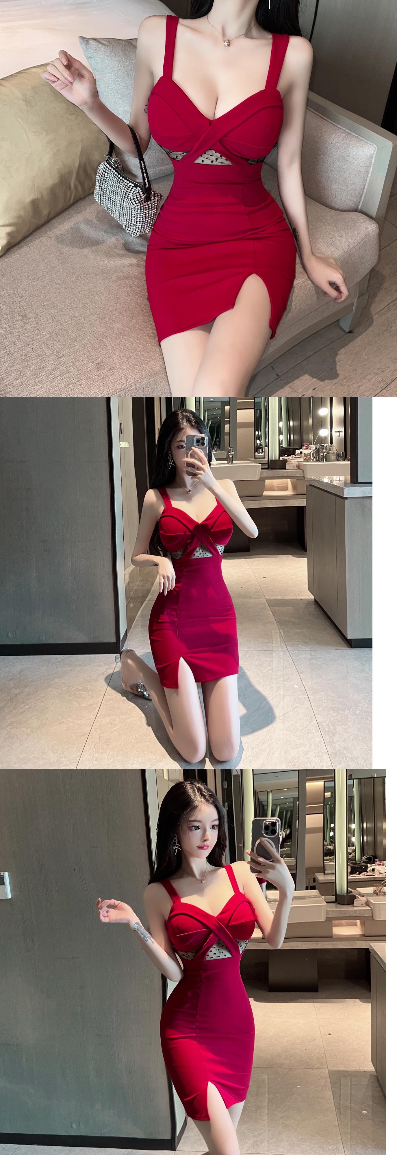 夜の作業服ナイトクラブショップ女性のセクシーなローカットディープVネック中空メッシュステッチサスペンダードレス micat62884751373