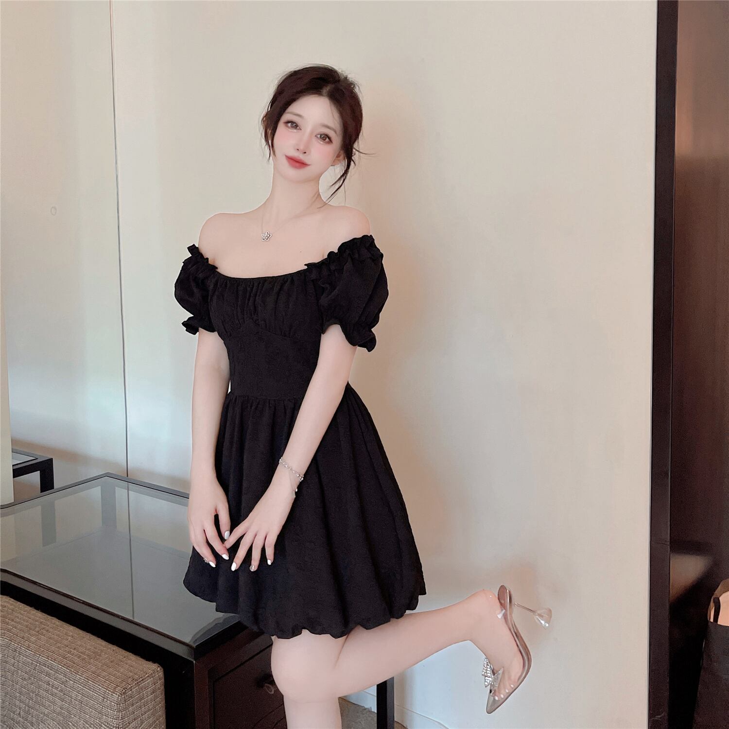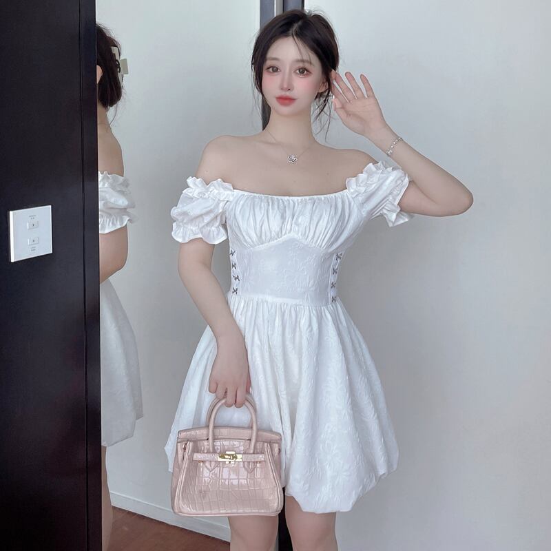 フランスの小さなドレス、ショートスタイル、普段着ができる、ハイエンドの気質、セクシーなオフショルダーのパフスリーブ、ウエスト、スリムなドレス micat1346446438