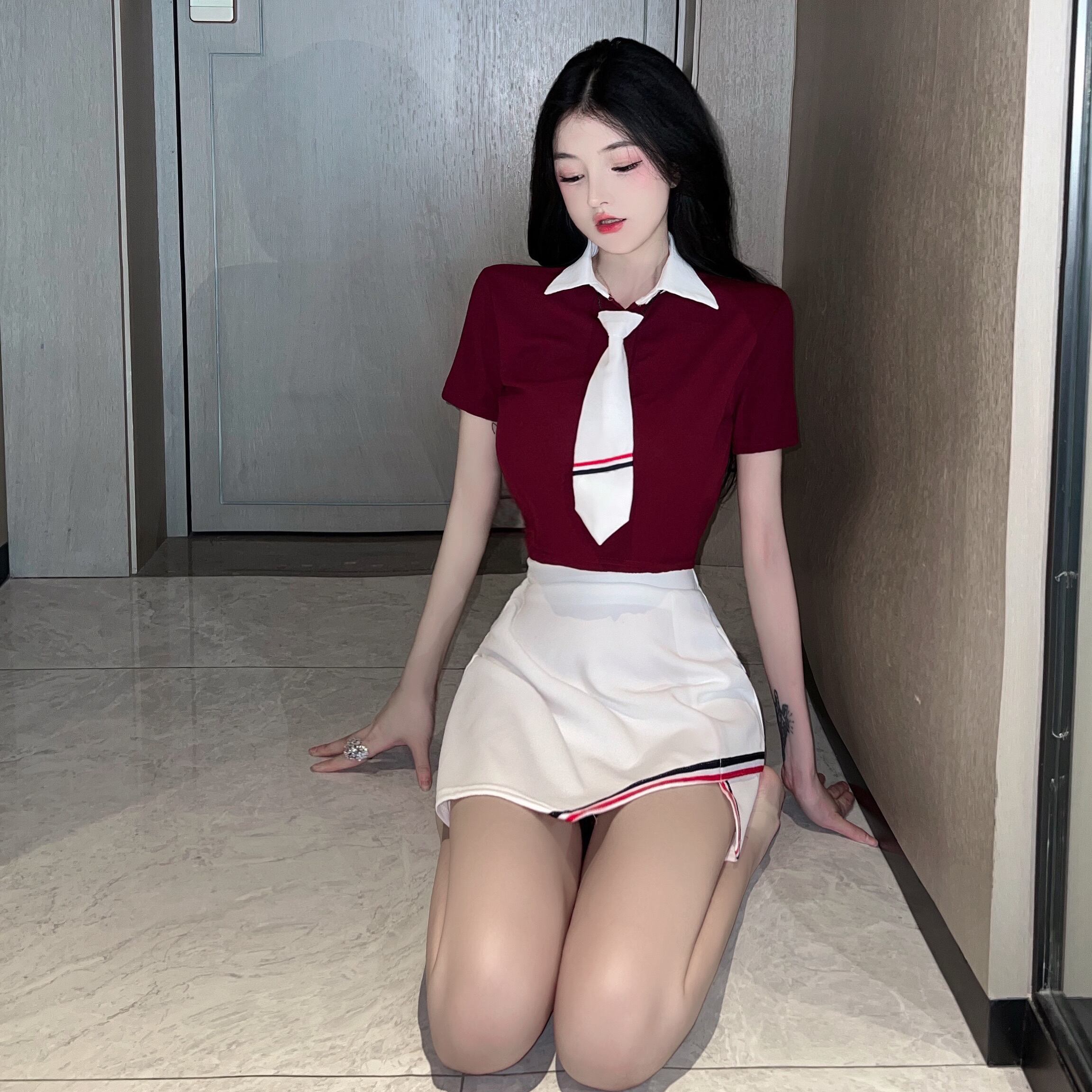 スチュワーデスJKユニムスーツ女性ナイトショップネクタイセクシーショートトップ+ヒップスカートツーピースセット micat41763549205