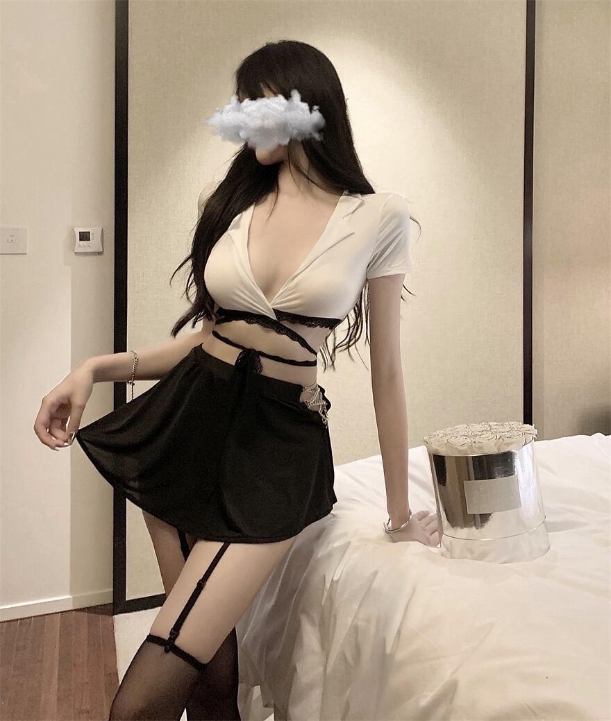 ナイトクラブの女性の作業服スーツセクシーなローカットディープVネックショートへそトップ+ショートスカート micat72260683061