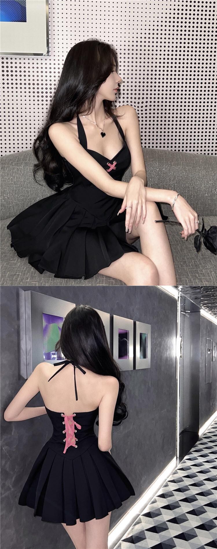 2022年の新しい女性の夏フランスの甘くてセクシーな背中の開いたプリーツのふくらんでいるホルターネックドレス micat19833088817