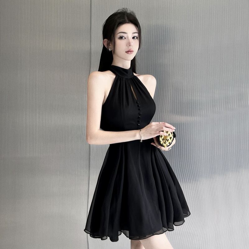 ヘップバーンスタイルのハイコールド婦人服軽くてなじみのあるユウジエスタイルのリトルブラックドレスセクシーなオフショルダーウエストスレンダーふくらんでいるドレス micat96657260573