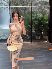 チャイナスタイルのチャイナドレスのイブニングドレスの気質のハイエンドは、国の潮のセクシーな中空の長いオフショルダーのホルターネックドレスを改善しました micat89570930916