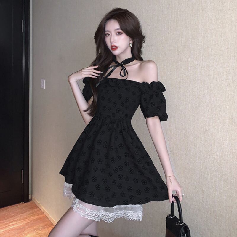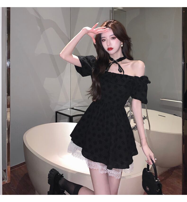 フレンチドレスハイエンド女性の夏の気質セクシーなワンショルダーパフスリーブウエストスリムAラインスカート micat9797862201