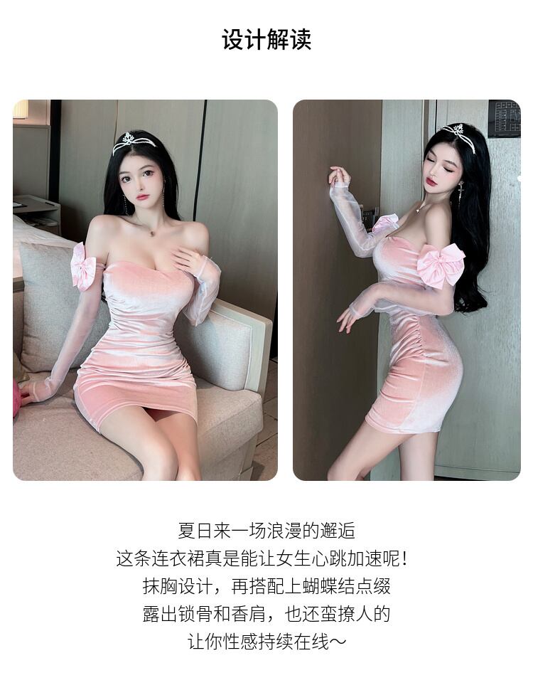 ナイトクラブの女性の小さなドレス手袋セクシーなワンショルダーチューブトップドレスと短い金のベルベットの宴会の気質 micat92750382456