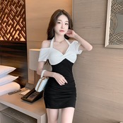 ナイトクラブの女性の技術者の作業服ナイトクラブの作業服セクシーなローカットディープVネックオフショルダーハンギングネックドレス micat44695128635