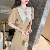人形の襟のレトロなドレス女性の夏の気質半袖ウエスト細いAラインスカートトレンディ qmn59084448577