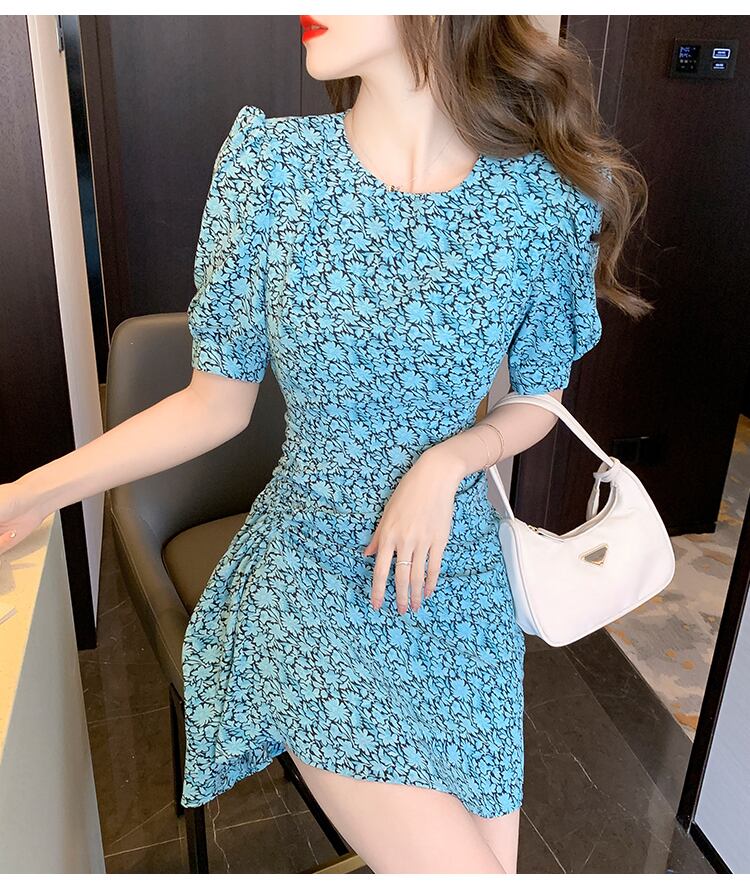 夏の新バージョンファッション気質小さな丸い首不規則な花柄半袖シフォンドレス女性の潮 qmn36974751115