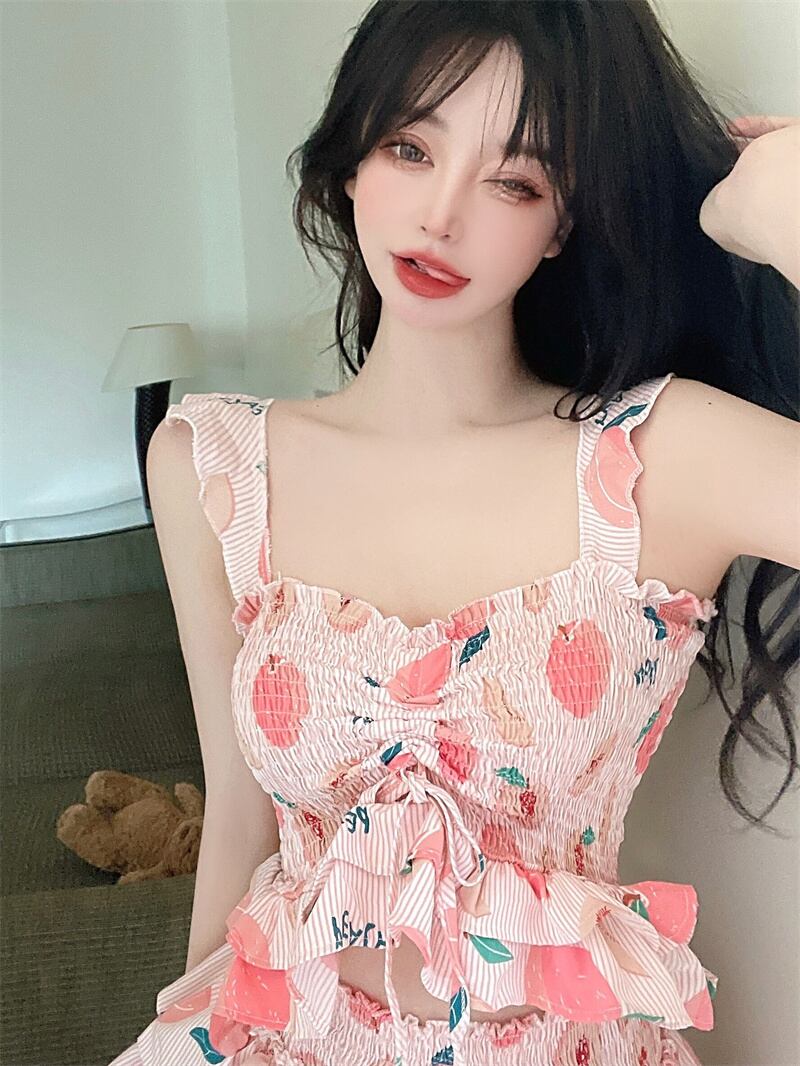 ミルクドレッシングスーツ夏の甘くてスパイシーなホットな女の子セクシーなショートキャミソールトップ+ケーキスカート micat19495415740