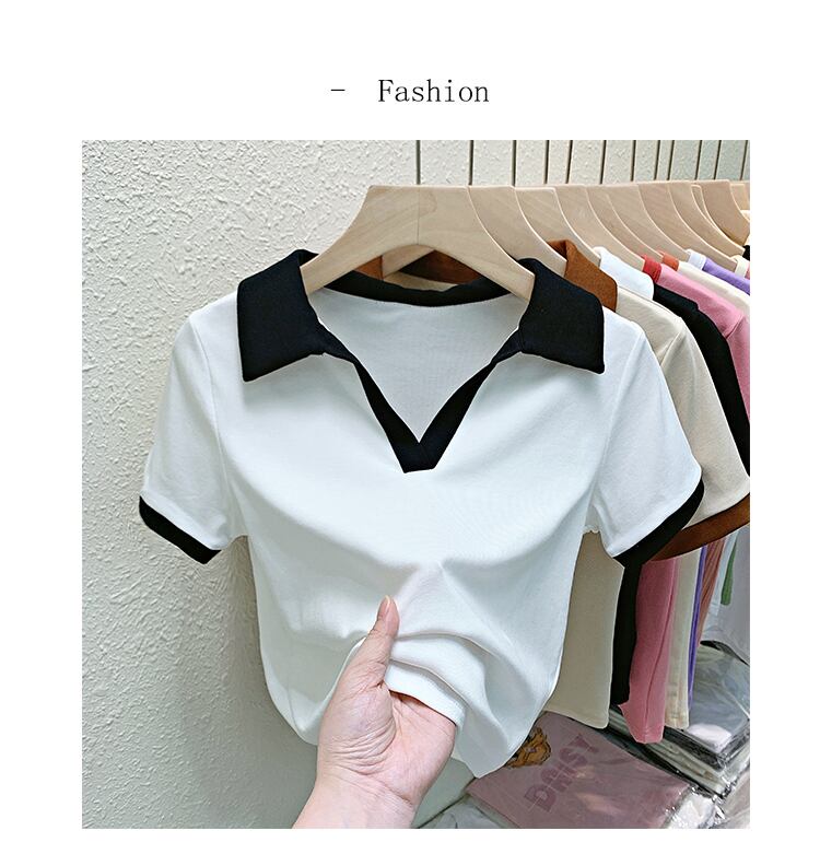 Vネックポロシャツコットン半袖Tシャツ2022年夏のスリムショートトップレディースアインスタイルスモールシャツの新バージョン qmn32260299785