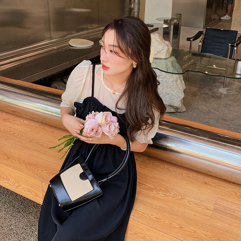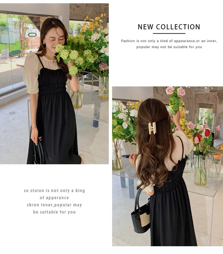 夏の新しいフランスの気質ファッションヘップバーンシックなスリングフェイクツーピースドレスウエストは薄い小さな黒いドレスです qmn318593533