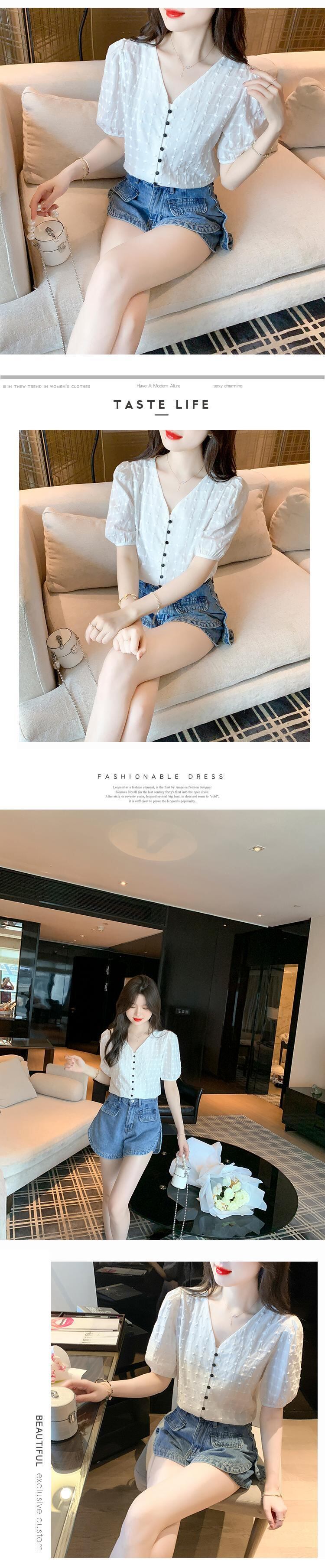 刺繍入りシャツレディースデザインセンスのエインスタイル半袖夏新バージョンファッションスモールフレグランススタイルスモールシャツパフスリーブトップ qmn69797350156