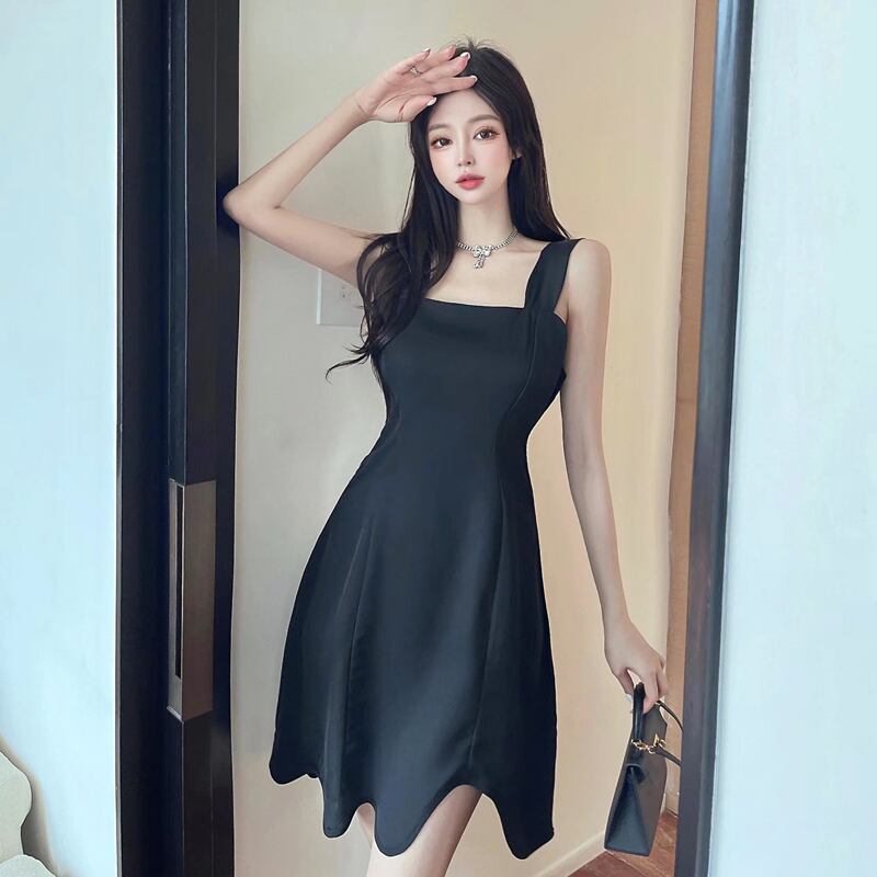 フランスのヘップバーンスタイルのリトルブラックドレス女性の夏のショートデザイン気質セクシーな波状の裾のサスペンダードレス micat91755387660