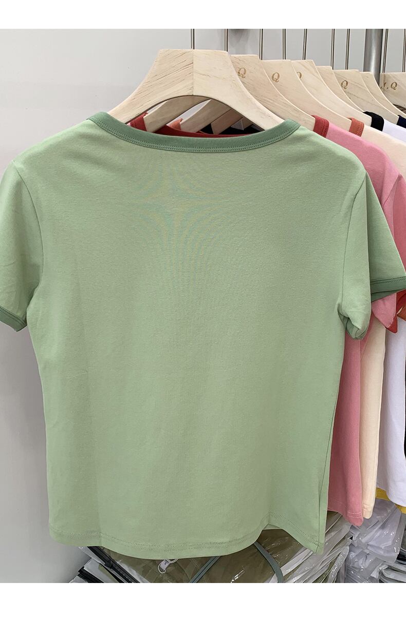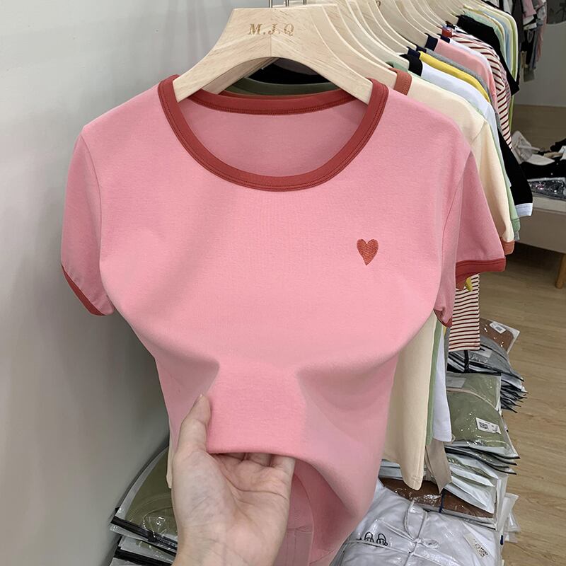夏の新作刺繍入りラブショルダーTシャツレディース半袖スウィートスリムフィットラウンドネックショートトップインタイド qmn41683749104