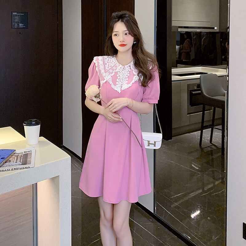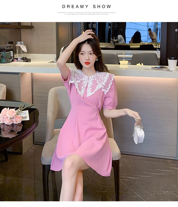 夏の新しいスタイルのファッション気質レースステッチ人形の襟のドレス女性の西洋スタイルのルーズなラインスカート qmn36745774059