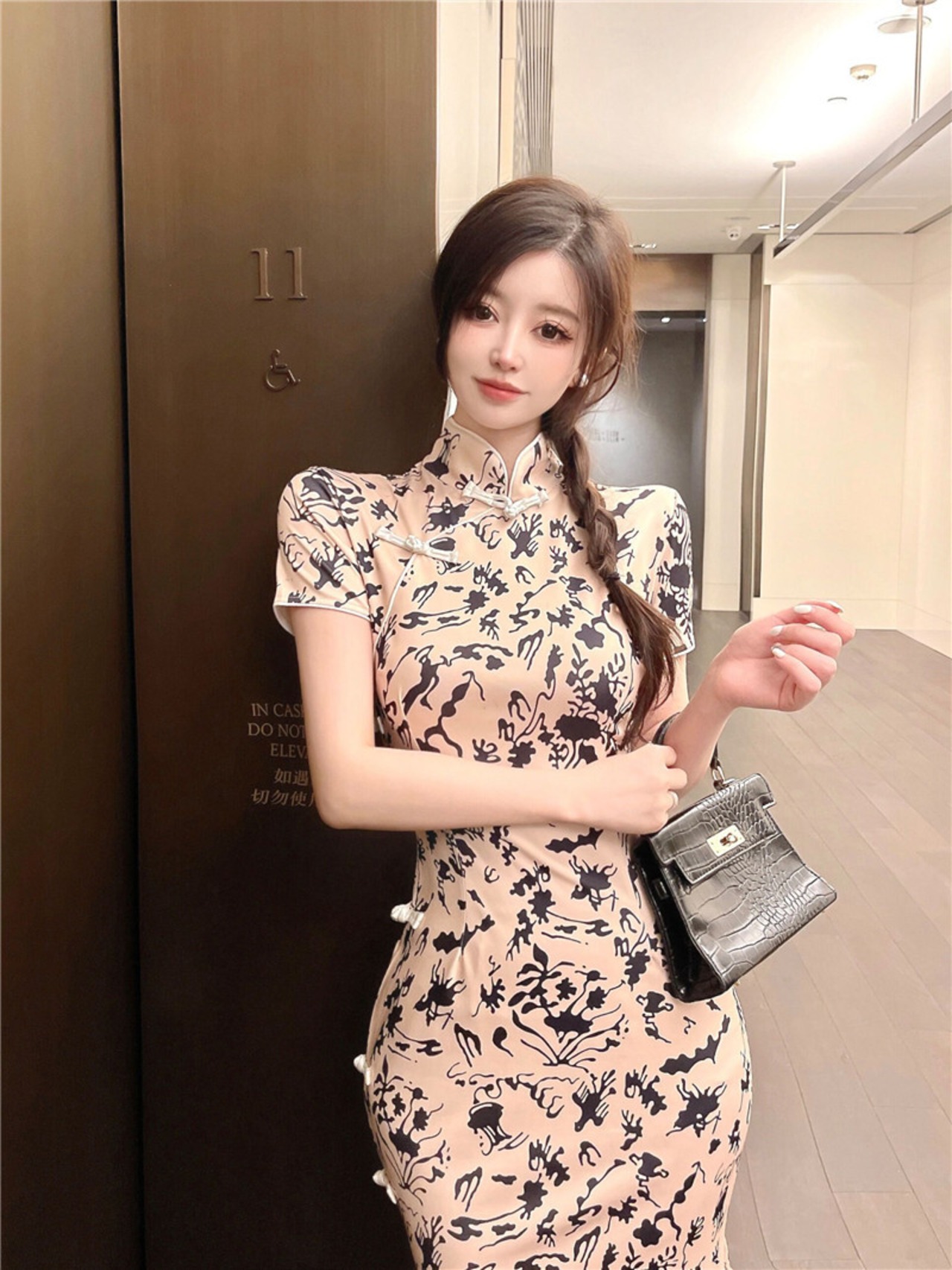 チャイナドレスのチャイナドレスの若々しい気質の改良版のハイエンドレトロフローラルセクシースリットミドル丈ドレス micat25089221057