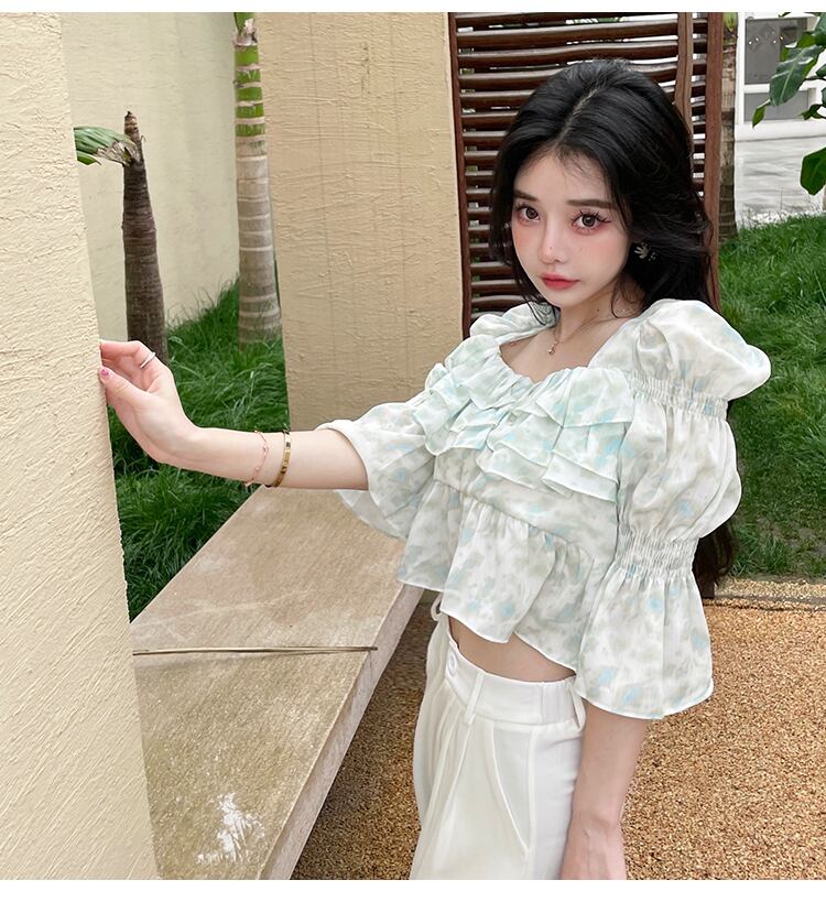 夏の新しいフランスのファッション気質ニッチ妖精ロマンチックなフリルフローラルトランペットスリーブシフォントップ女性 qmn67288612308