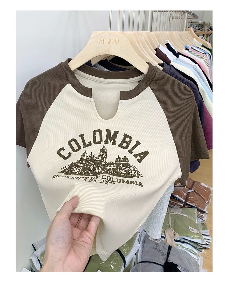 フレンチレトロ半袖TシャツレディースサマーデザインニッチショートスタイルウエスタンスタイルカードウエストスモールシャツスウィートVネックトップ qmn20877702934