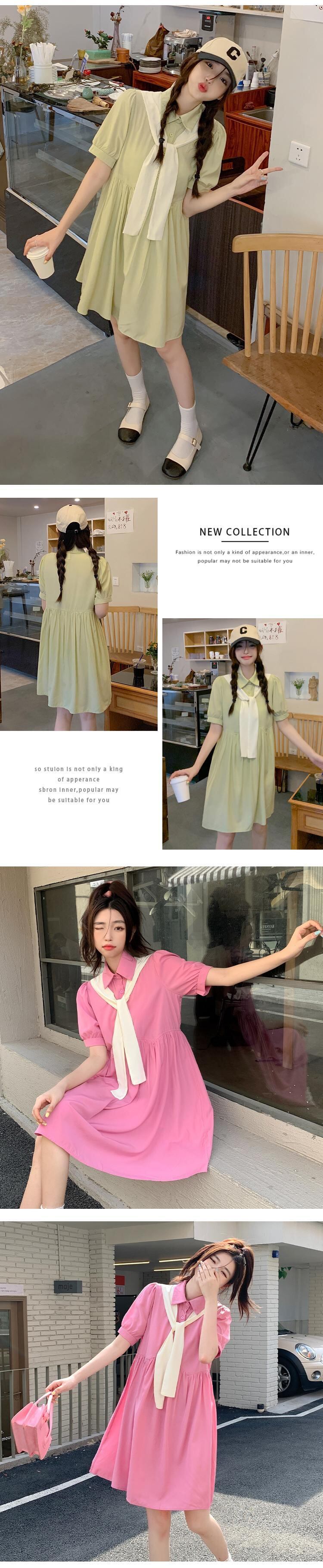 気質カレッジスタイルの夏の新バージョン年齢を減らすヒットカラーショールステッチ無地ルーズシャツドレス女性 qmn26576255711