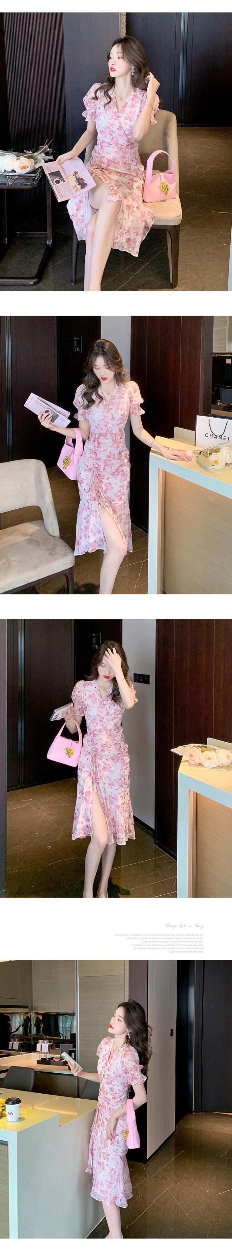 夏の新バージョンのファッション気質フローラルブロンズシフォンスリムスリムフィッシュテールスカートショートドレス女性 qmn50166279127