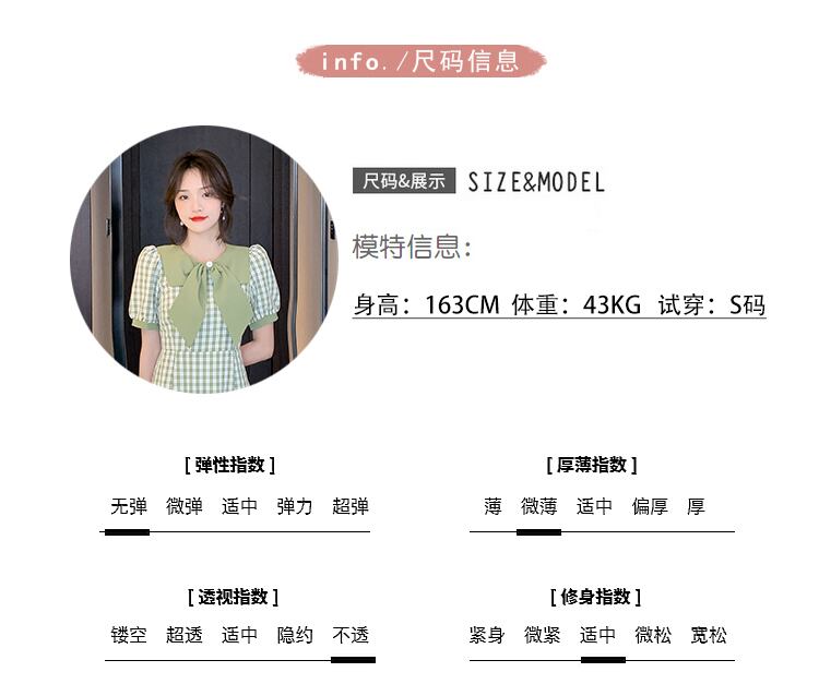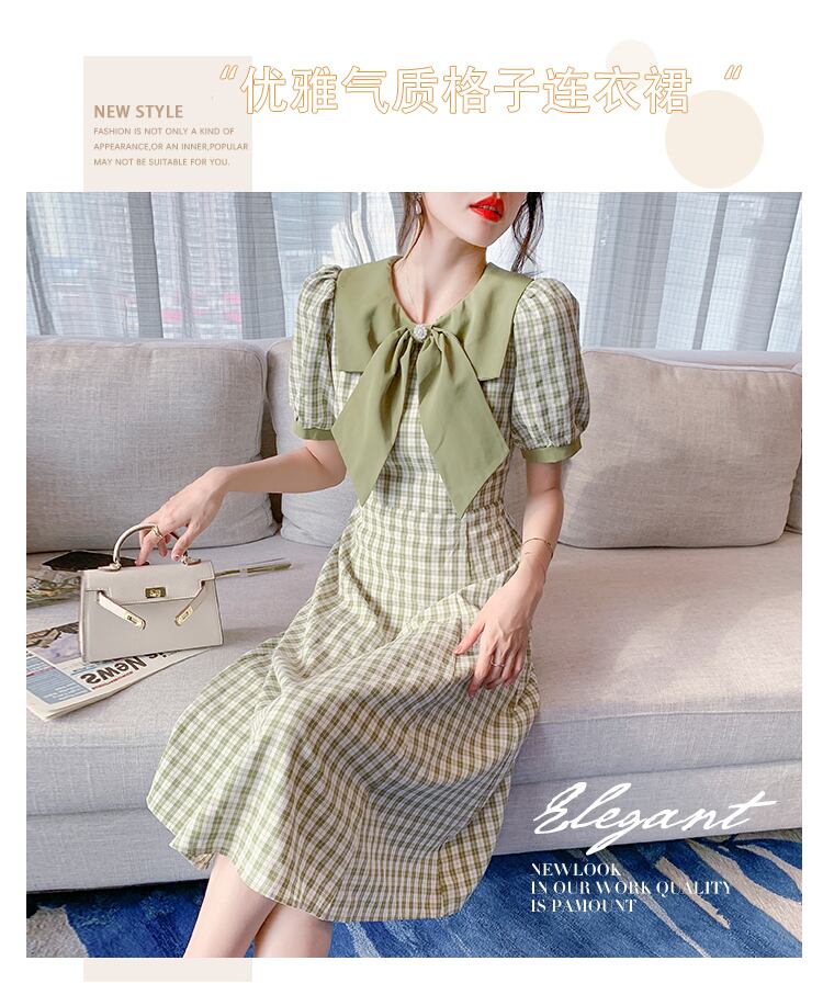 パフスリーブチェック柄ハイウエストワンピースレディースサマーニュースタイルファッション気質ウエストは薄手の半袖Aラインスカート qmn45137832356