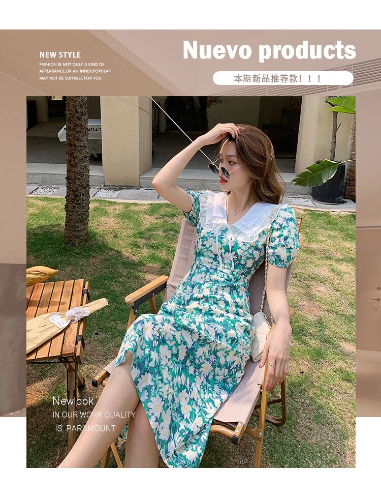 夏の新作フレンチ気質ドレス女性フリルドールカラーミドル丈フラワーカラー半袖フローラルヒップスカート qmn13841210593