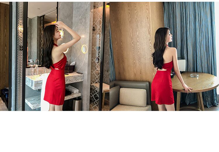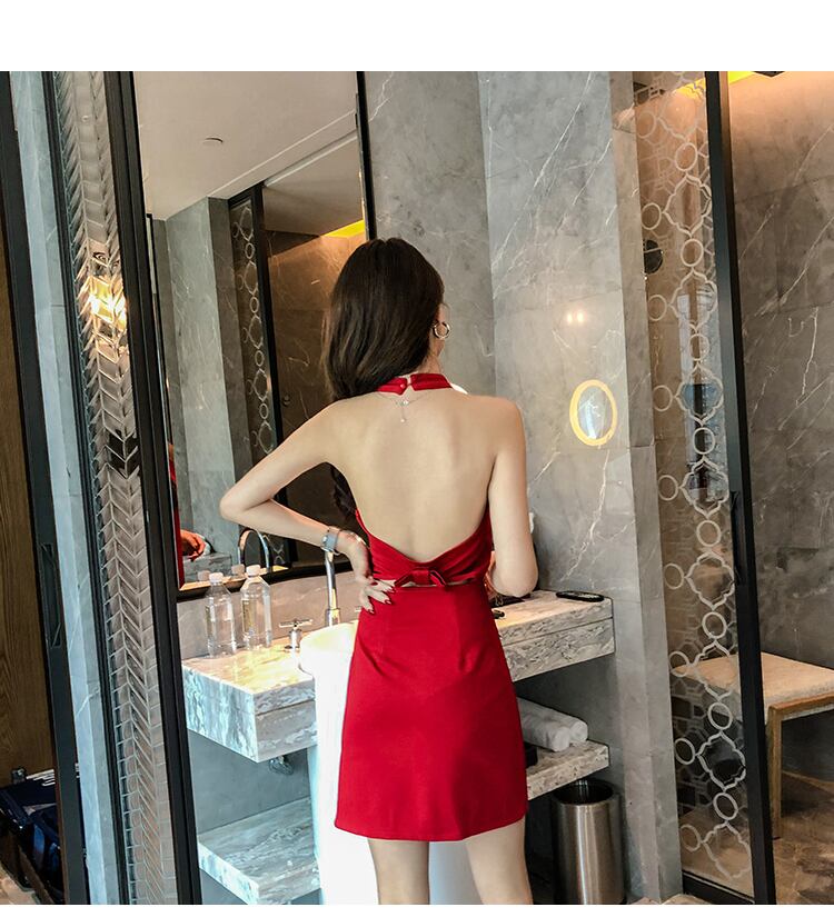 ナイトクラブの女性の夏の新ファッション純粋な欲望ホルター ドレス スカート ビッグ背中の開いたセクシーなタイトなバッグ ヒップ ドレス qmn62427903747