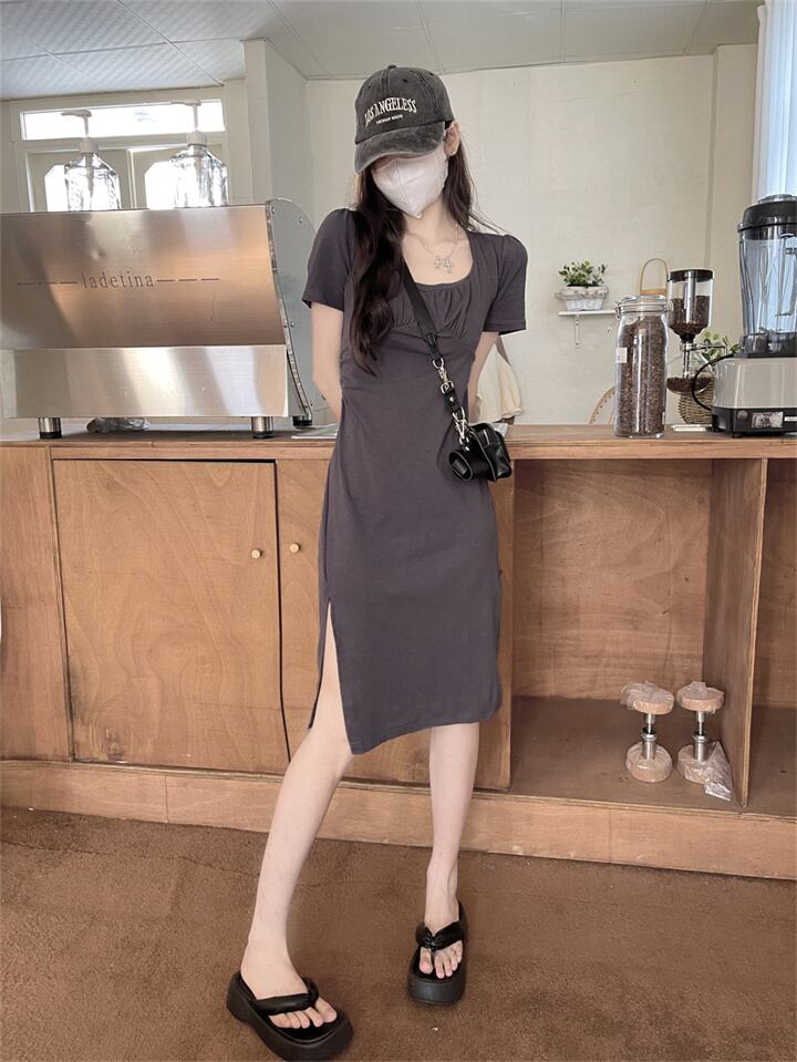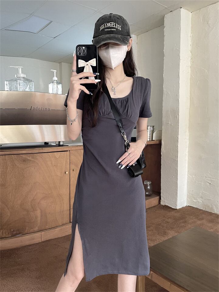 夏の新しいファッション純粋な欲望の自己修養の女神の気質のセクシーなドレスの女性の腰無地半袖ヒップスカート qmn62601918505