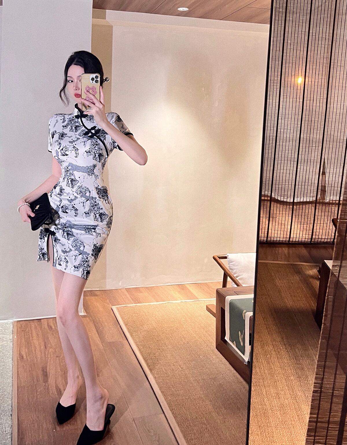 夏の新しいファッションのセクシーなレトロな黒と白の花改良された毎日のチャイナ ドレス純粋な欲望セクシーなショート スリット ドレス qmn33665736784
