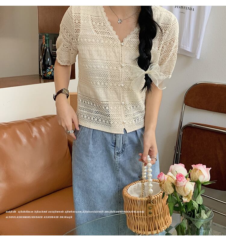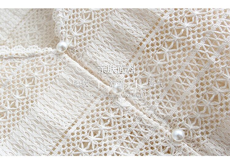 夏の新バージョンのファッション優しいスタイルの気質薄いセクション ニット フック花中空甘い真珠ボタン無地カーディガン qmn82578187087
