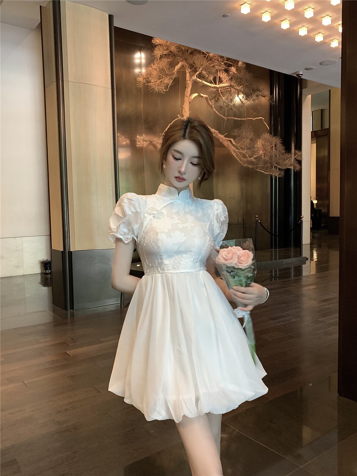 2022 インターネットセレブ人気チャイナドレス若い気質ハイエンドハイエンドスーパー妖精フレンチ修正パフスリーブドレス micat61796751377