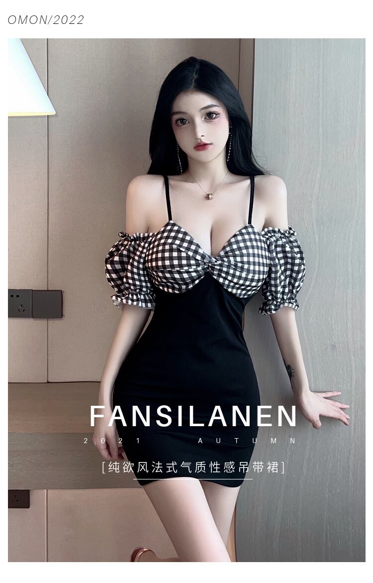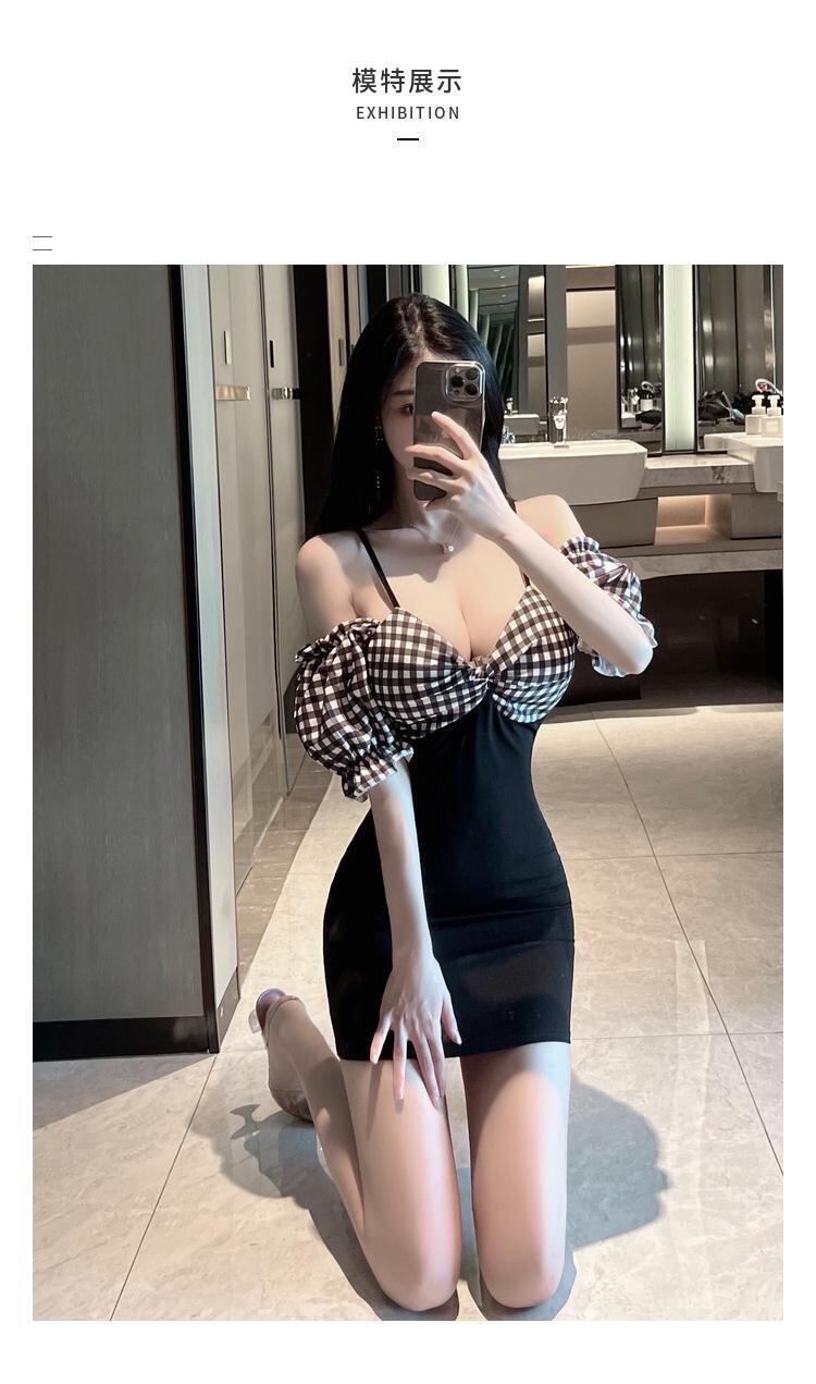 ナイトクラブの女性のナイトクラブの技術者のオーバーオールのセクシーなローカットの深い V ネックの格子縞のステッチのサスペンダー ドレス micat41918886880