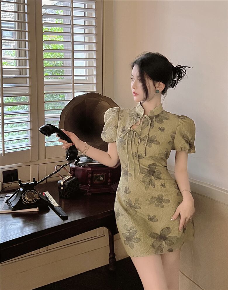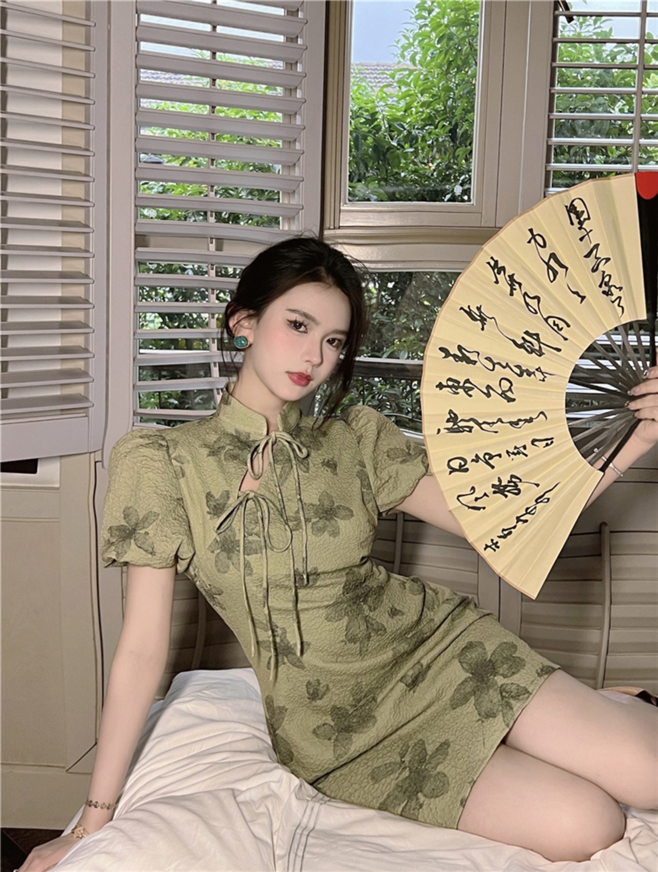 緑のチャイナドレス女性の夏 2022 新しい若いスタイルの新しい中国の改良版毎日のセクシーなドレス micat99498646220