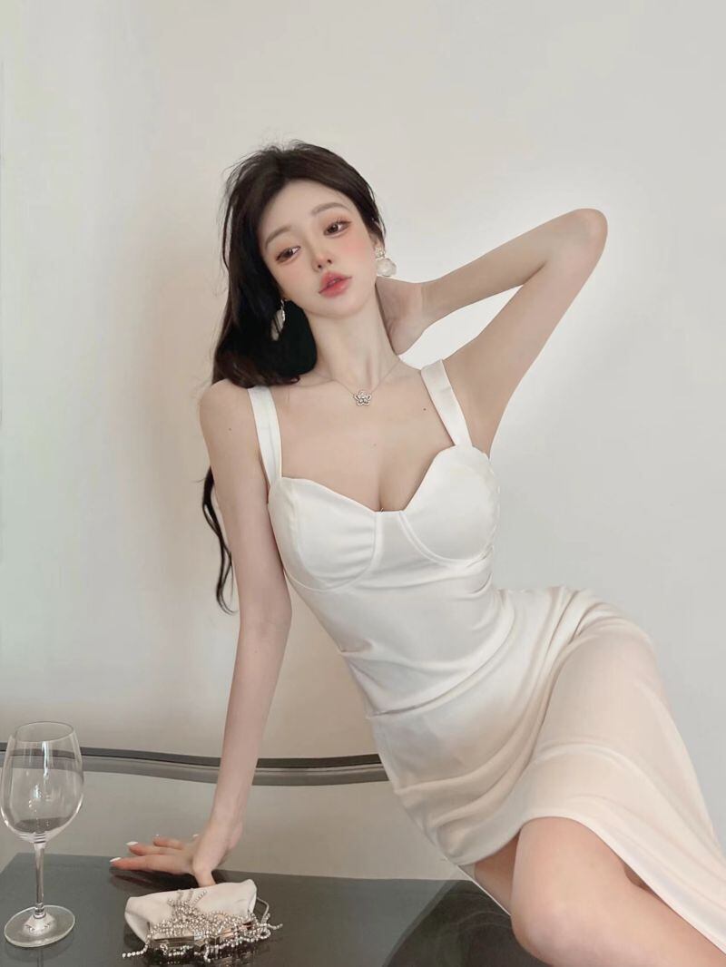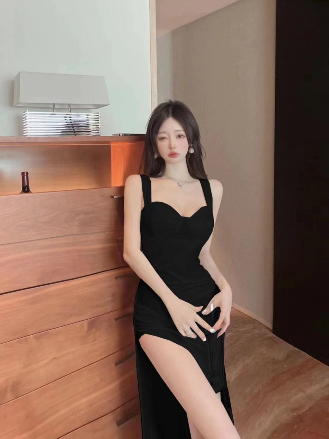 イブニングドレス ロングスカート ハイエンド ライト ラグジュアリー ニッチ 宴会気質 セクシーなローカット 深いVネック ハイスリット サスペンダードレス micat60736639472