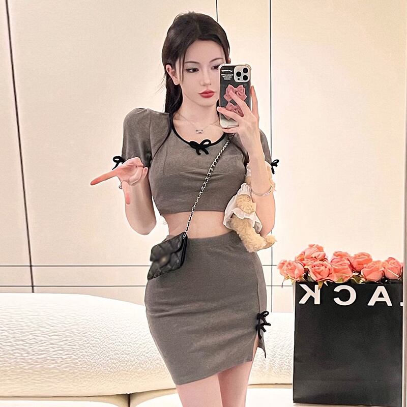 ソルト系yコーデスーツ女性夏セクシーショートへそトップ+ハイウエストスカート2点セット micat57544170575