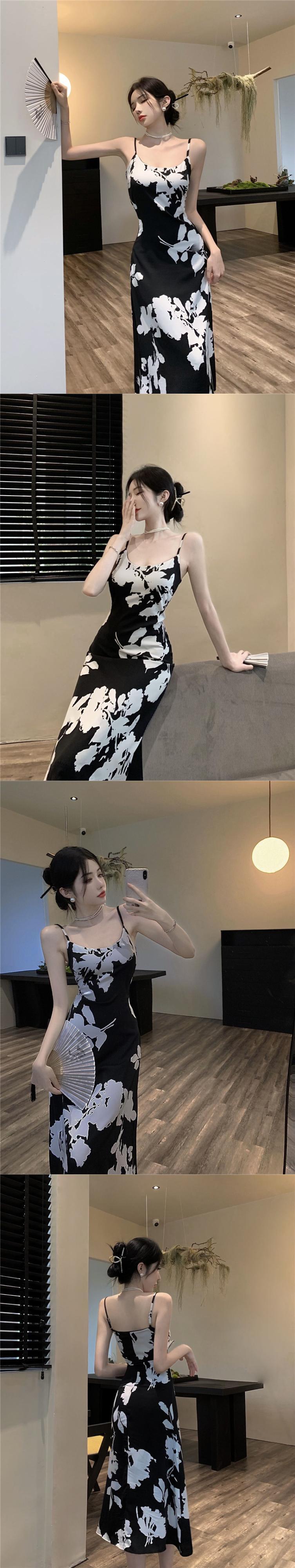 サスペンダー ドレス夏の女性の香港スタイルのレトロなプリント高品質の気質ライトおなじみ Yujie スタイル ミッドレングス サスペンダー ドレス micat21735130362