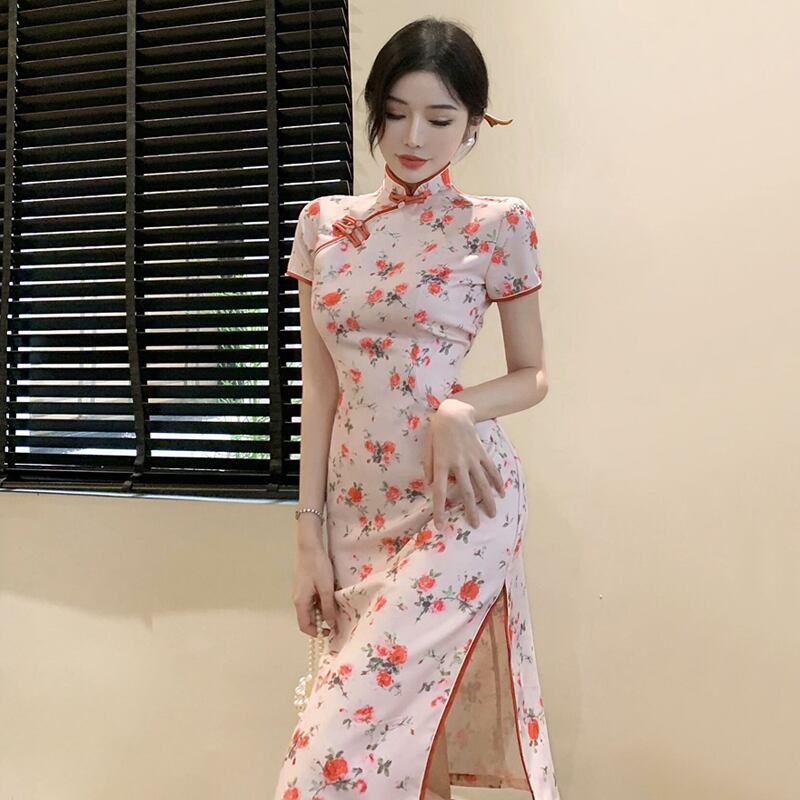 改良されたチャイナ ドレス 2022 新しい女性の夏の若い美しいレトロな花柄の魅力的なセクシーなスプリット ドレス micat1130677131