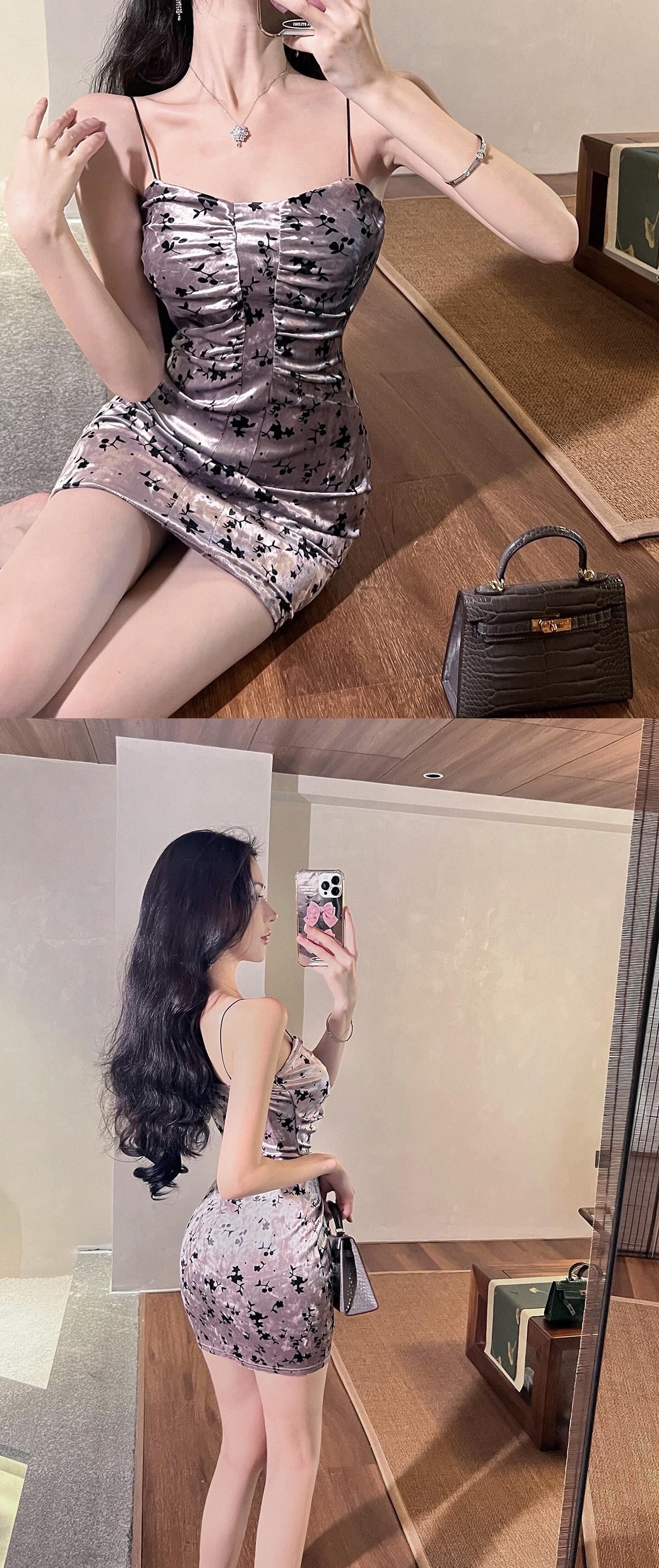ドレスハイエンド気質レディ女神ファンハイエンド香港スタイルレトロプリント気質セクシーなベルベットサスペンダースカート micat15140668858