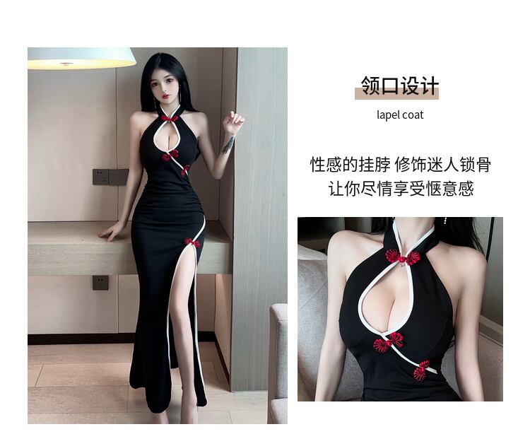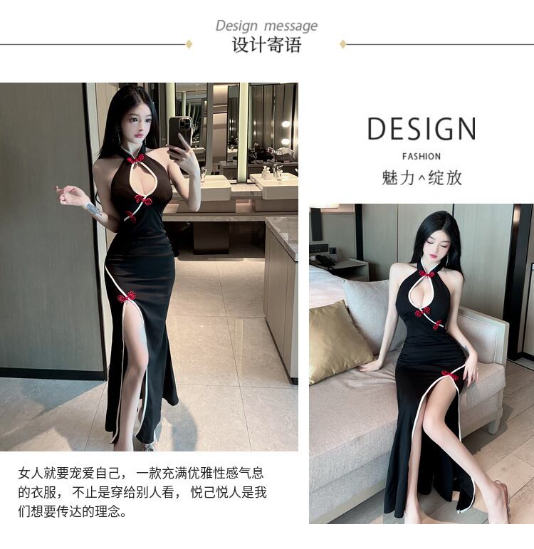 チャイナ イブニング ドレス ロング ドレス ナイトクラブの女性の宴会気質セクシーなローカット深い V ネック中空ホルター ドレス micat82244817316