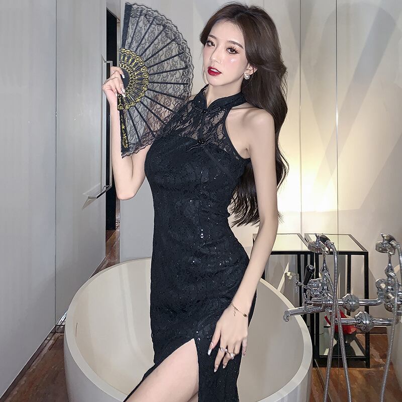 チャイナ イブニング ドレス ハイエンド ライト ラグジュアリー ニッチ ハイエンド シャイニー バンケット 気質 セクシー 見事なオフショルダー ドレス micat86339889309