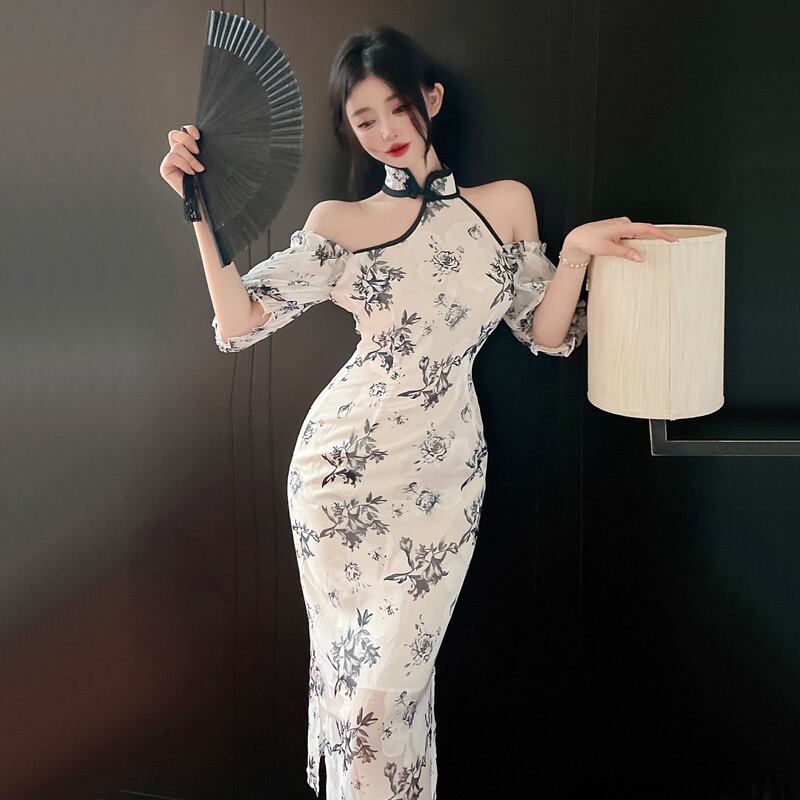 -エンド チャイナ イブニング ドレスハイエンド宴会気質レトロな新しい中国のセクシーな見事なストラップレス ホルター ドレス micat65037619360