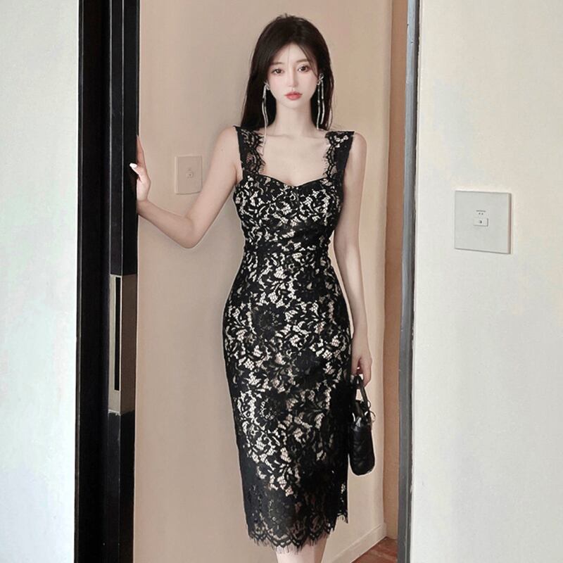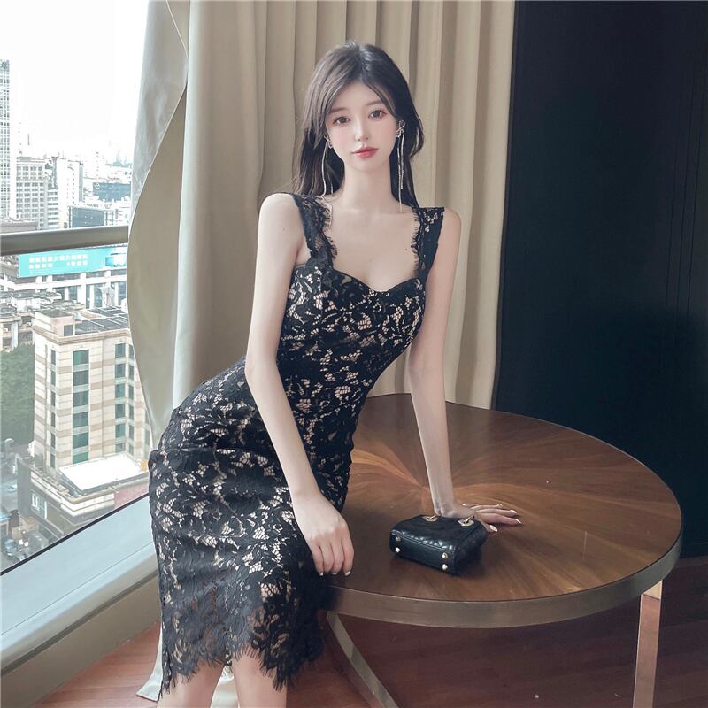 パーティードレス レディース イブニングドレス 宴会 気質 セクシー セクシー Vネック スリム ミドル丈 レース スリングスカート micat9413983974