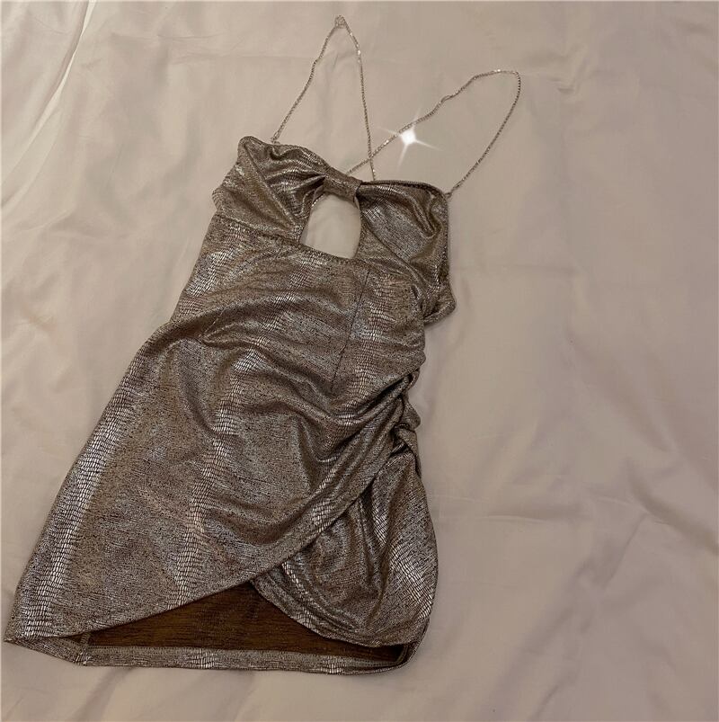 ナイトクラブの女性のナイトクラブのナイトクラブの小さなドレス短い光沢のあるシルクのセクシーなバックレス チェーン サスペンダー ドレス micat84228101346
