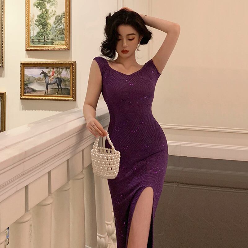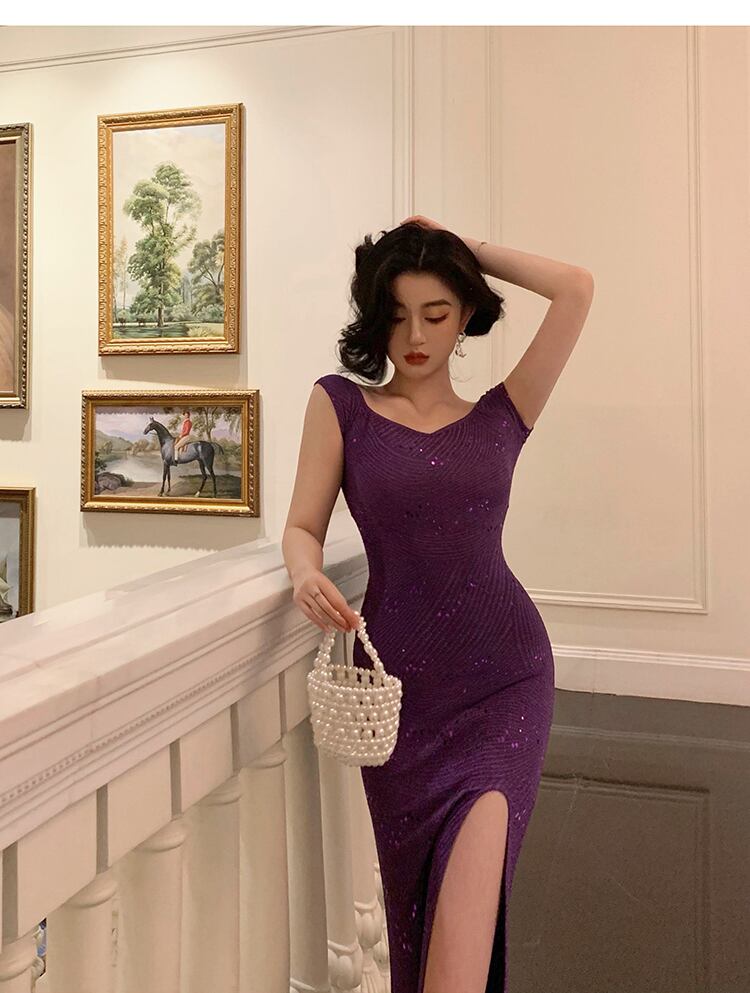 パープルイブニングドレススカートライトラグジュアリーニッチハイエンドシャイニーパーティー宴会気質セクシーな中空バックレスドレス micat25719482502